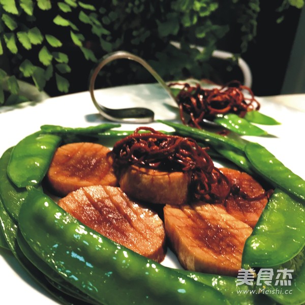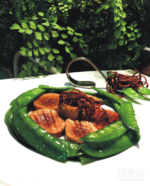 9.盛入盘内荷兰豆之中,美味佳肴就可以开吃了